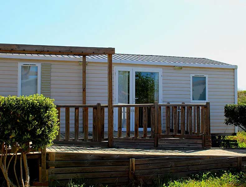 Profitez d’une terrasse accessible sans marche, équipée d’une table forestière pour vos repas et moments de détente. Situé dans un environnement calme et arboré, ce mobil-home vous permet de vivre vos vacances en toute autonomie, en harmonie avec la nature camarguaise.